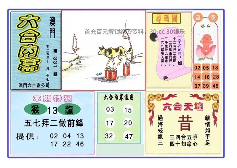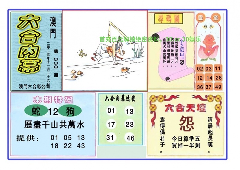 332期:密门仙机/心水特码信/黄大仙天书/波色生肖诗/生肖歇后语